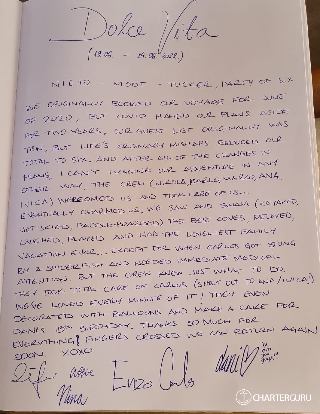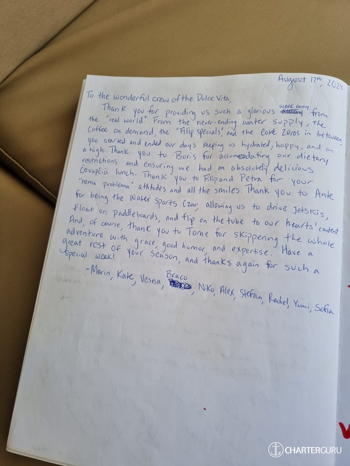 There are moments in time to have special days in paradise and this trip was one of them. From Tomis stead hand in charge, Ante's quiet talking but solid demeanour and Boris making us incredible food. Mostly, I'd like to that Nikola and Irene, who feel like one of the family!