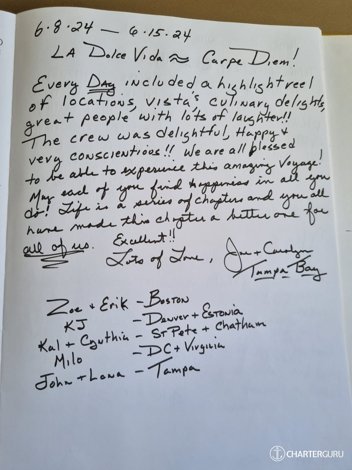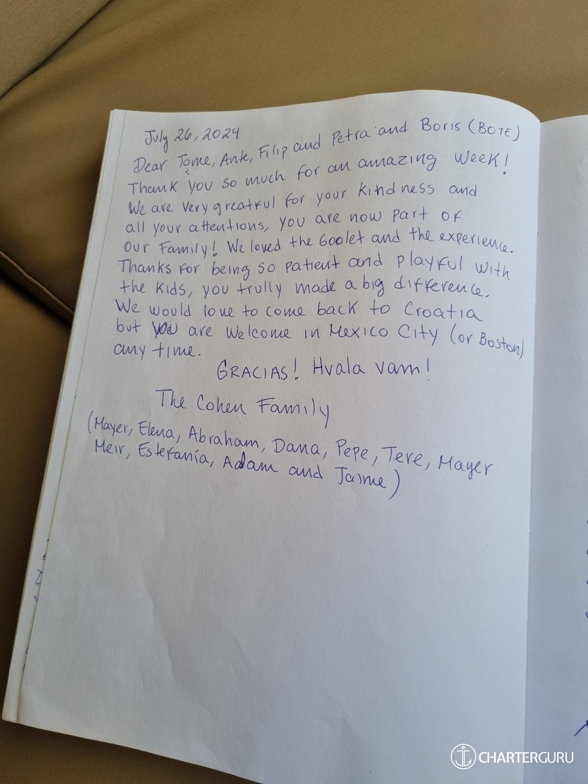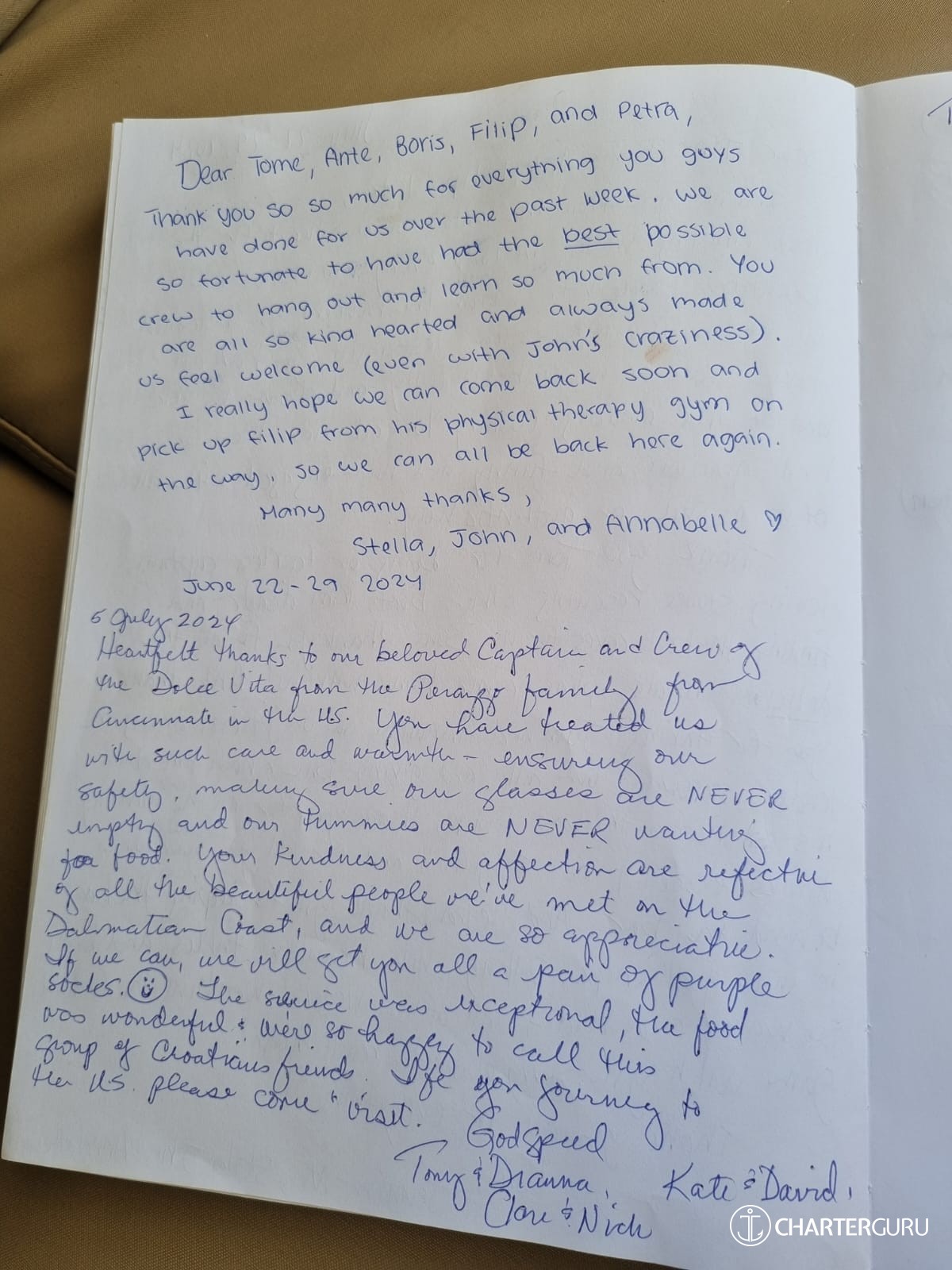 Thank you so much for such a great week, you have all been so kind to us from start to finish. We look forward to coming back in 2025 and staying with you for a 5th time!