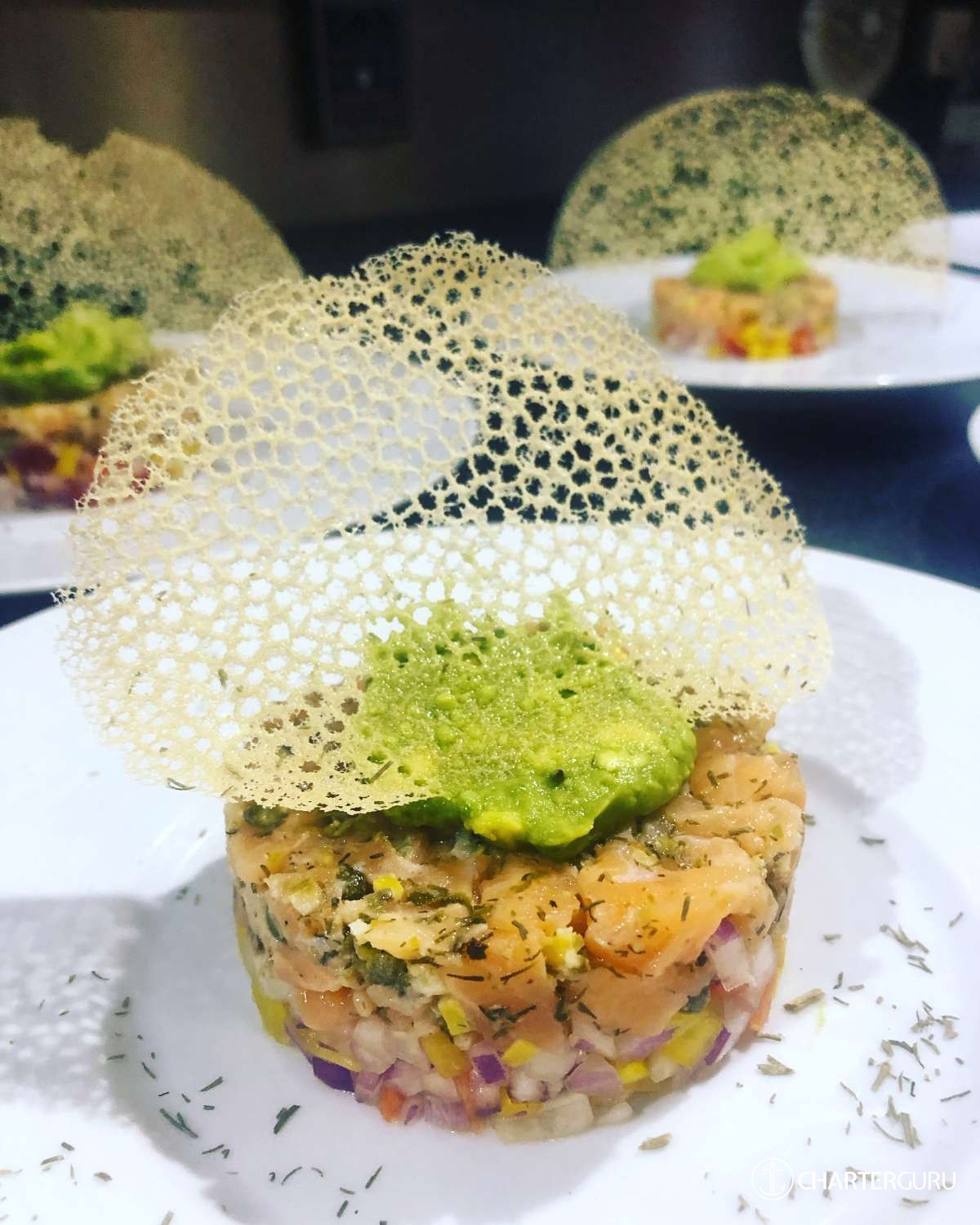 White fish ceviche, served with rocket and dill dressing